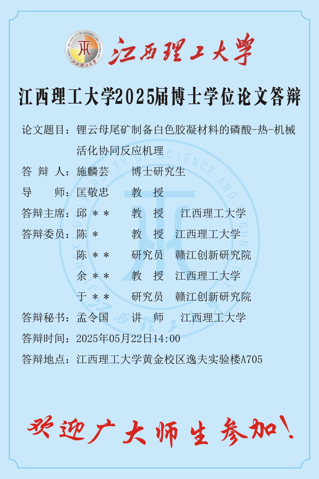 江西理工大学2025届博士学位论文答辩-施麟芸