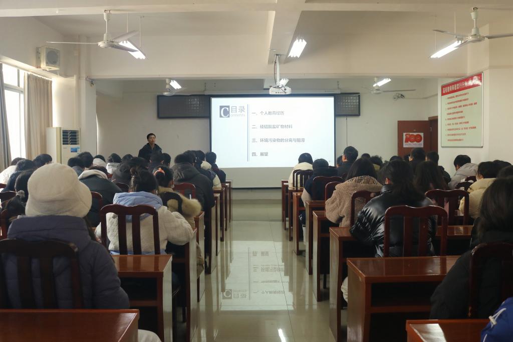 本网讯 12月23日,我院于黄金校区逸夫楼第二会议室举办“硅铝酸盐矿物的环境修复应用”学术报告会,我院环境工程专业副教授罗武辉担任主讲,相关专业学生参加此次报告会。