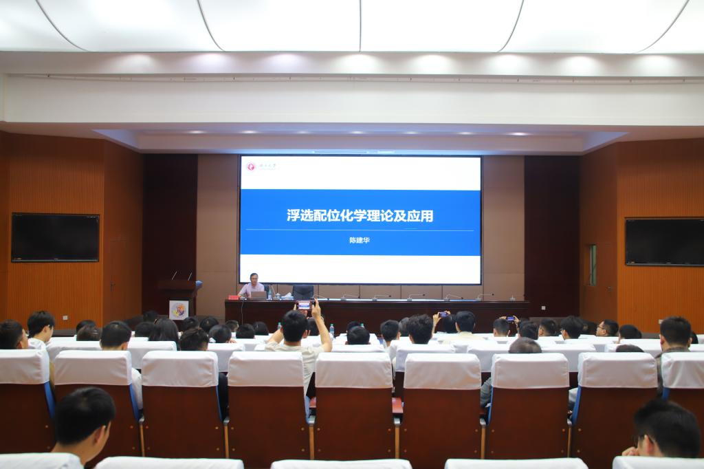 本网讯  6月5日,广西大学博士生导师陈建华教授一行来校交流,并在黄金校区逸夫楼报告厅做了以“矿物浮选界面配位化学原理”为主题的学术报告。校国际创新研究院执行院长邱廷省、我院副院长余新阳以及相关专业教师、本科生、研究生等参与本次讲座。讲座由余新阳主持。