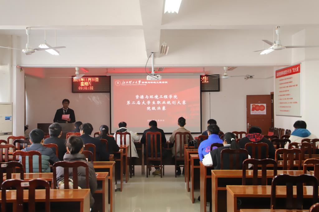 本网讯 11月30日,学院在黄金校区逸夫楼第二会议室举办了第二届大学生职业规划大赛决赛。校招生就业处郭传州和学院辅导员张吉勇、叶景胜、梁颜祯、刘黎明、赖虔德担任比赛评委。本次大赛由环境233班朱定鹏同学主持。