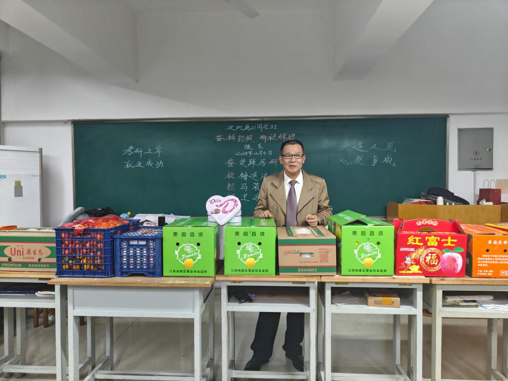 随着考研进入倒计时,陈飞也为地质工程的考研学子们送上了一份特别的礼物——一箱箱精心挑选的新鲜水果。他精心挑选了脐橙、柚子、苹果、橘子等多种水果,寓意着水到渠成(脐橙)、有(柚)你成功、平(萍)步青云、诸事大吉(橘)等美好祝愿。