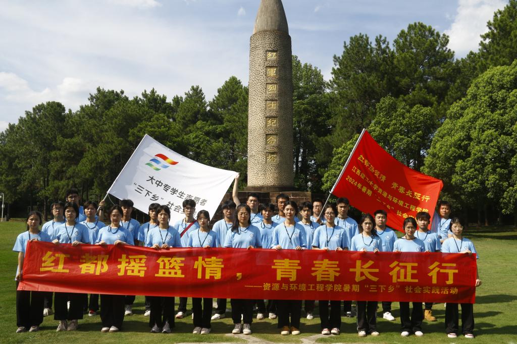 2024年暑期,由我院研究生、本科生组成的“红都摇篮情,青春长征行”社会实践队赴江西省瑞金市沙洲坝青少年实践点、赣州市章贡区沙石镇峰山村和九里峰山社区新时代文明实践站以及共和国摇篮瑞金市、长征出发地于都县等地的红色旧址、钨矿企业、敬老院、青少年社会实践点、爱国主义教育基地、童心港湾等处开展了一系列实践活动。实践队积极彰显学院地矿专业独特优势,巧妙融合红矿文化这一鲜明特点,通过学习红色精神与矿业文化,持续传播红色文化,弘扬红色矿业精神,在实践中“溯红源、悟长征、扬古韵、明矿魂”。受到了中国网、中华网、文明中国网、文明江西网等媒体的143次报道,取得了良好的社会影响。