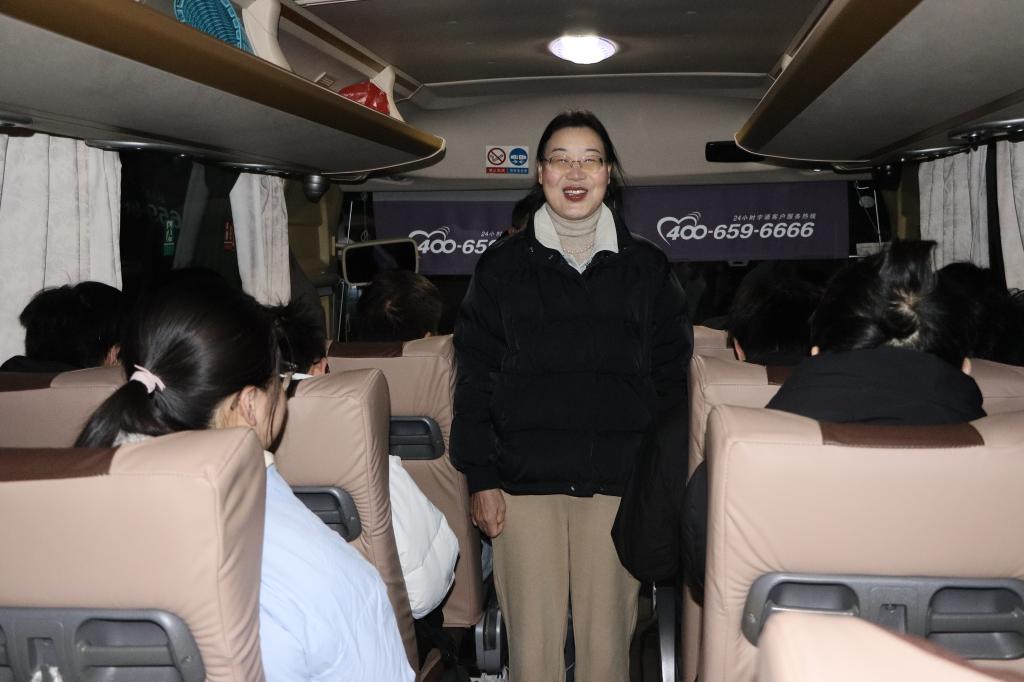 大巴车启动后,学院领导以及志愿者们站在路边,挥手送别考研学子,为他们献上自己最衷心的祝愿。