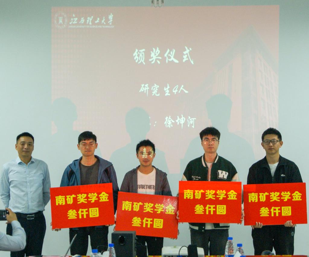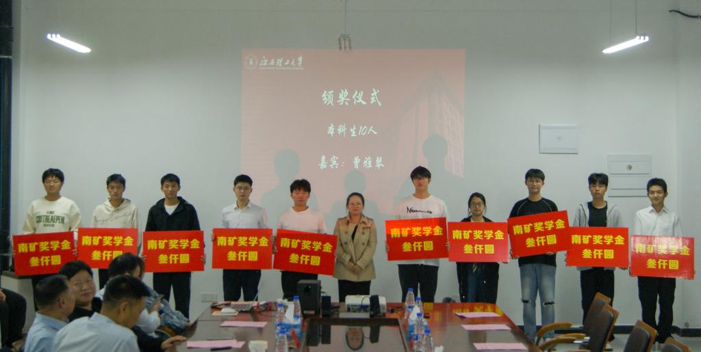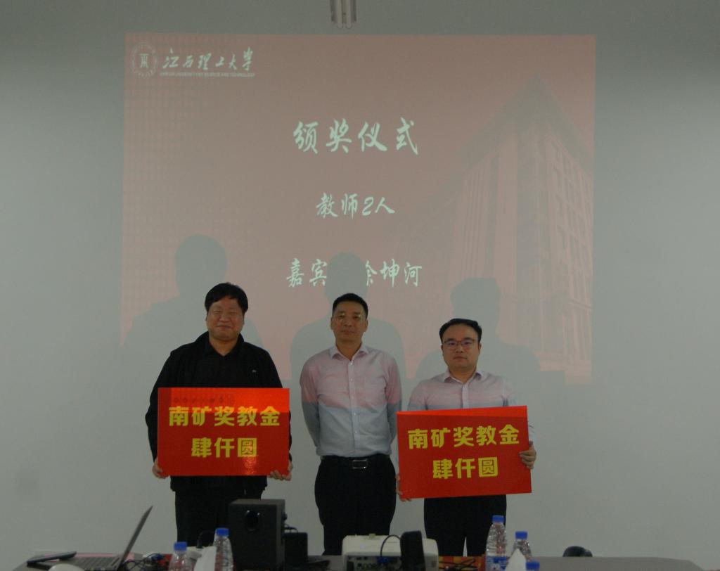 颁奖环节。徐坤河为获得“南矿奖教金”2名教师和获得“南矿奖学金”4名研究生颁奖,曾雅琴为获得“南矿奖学金”10名本科生颁奖。