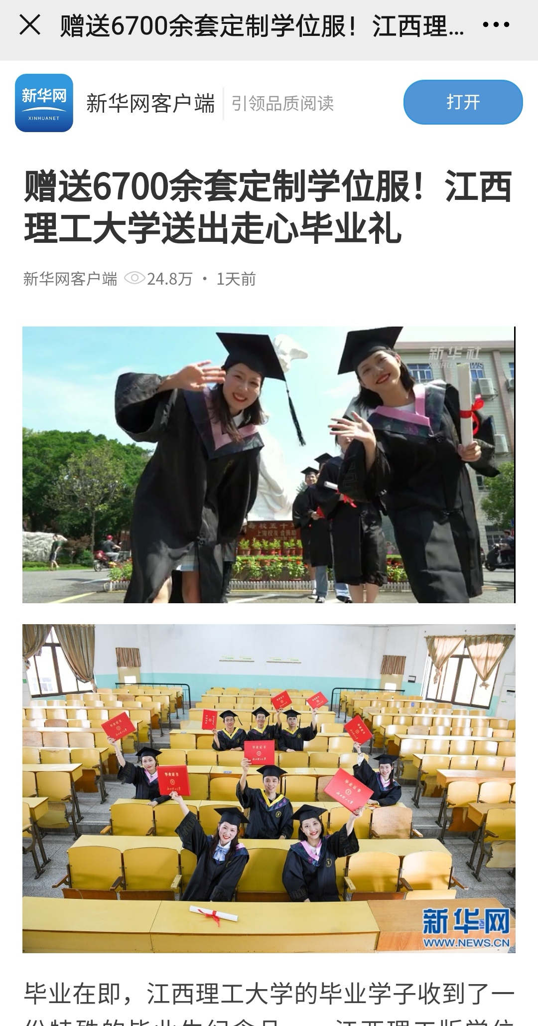 《新华网客户端》:赠送6700余套定制学位服!江西理工大学送出走心毕业礼