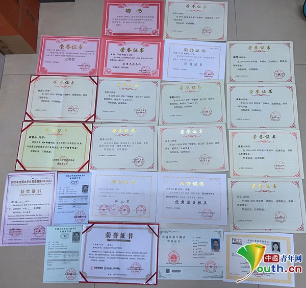 两人共同获得的证书。中国青年网通讯员 明慧婷 摄