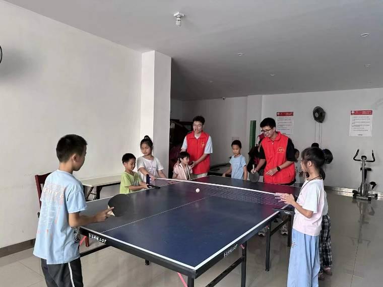 文体活动中,志愿者和孩子们一起剪纸,丰富孩子们的文化生活,营造浓厚的传统文化氛围,充分展现了我国传统剪纸文化的艺术魅力,继承和弘扬传统文化艺术,提高孩子们的艺术修养,为他们的活动增添生气;学院体育中心的志愿者教孩子们乒乓球,和孩子们一起打球,培养孩子对课外体育活动的兴趣,强健孩子们的体魄。