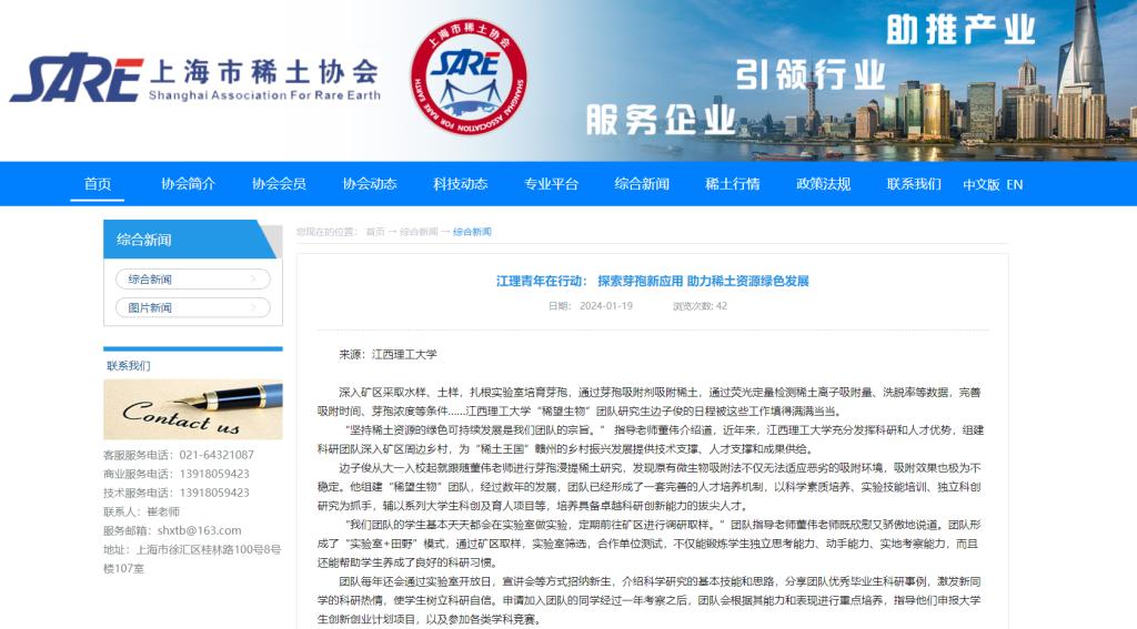 《上海市稀土协会》:江理学子探索芽孢新应用,助力稀土资源绿色发展