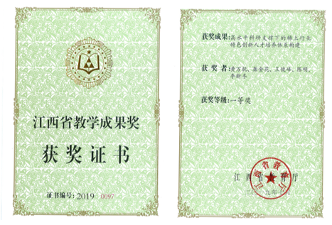 获国家教学成果二等奖、江西省教学成果特等奖等国家/省部级教学奖励10项;指导学生获中国国际“互联网+”创新创业大赛国家金奖/银奖等国家级竞赛奖励47项。代表性教学成果奖如下: