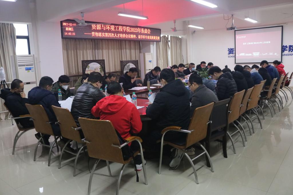 首先,采矿工程系主任曾鹏作“立德树人,强化人才”为主题的发言。他根据学生学习生活一体化为基础,提出建设学生事务服务中心,守护学生健康成长平台。紧接着,矿物加工工程系主任冯博、环境与生物工程系主任董伟、地质工程系主任何书围绕学科建设、科学研究、专业建设、本科教学、研究生培养、学生工作、实验室工作、师资队伍等方面汇报了2023年工作谋划。