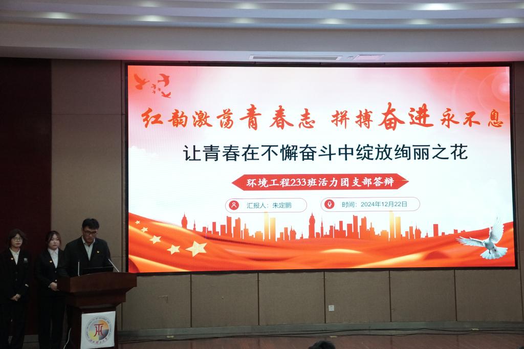 随着全体唱响团歌,评选大会正式拉开序幕。2022级、2023级、2024级共37个团支部按照抽签顺序依次上台答辩,各团支部通过内容形式多样的PPT展现出各团支部的优良风貌,回顾了支部本年度的工作内容,总结了工作经验,畅谈了未来计划。