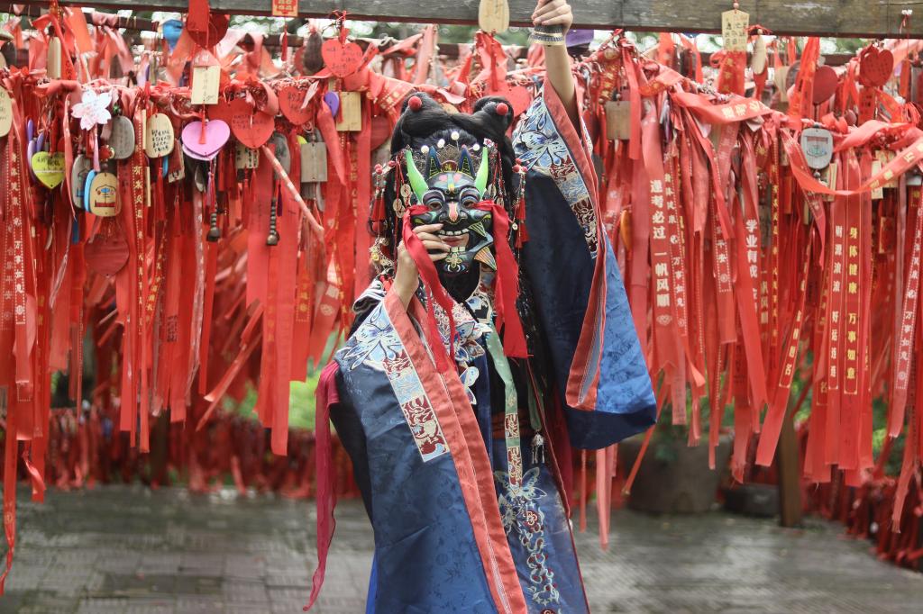 在最后一轮比赛中,张璐同学别出心裁地选择了傩戏表演她精心装扮,通过独特的唱腔和夸张的动作,生动地展现了傩戏这一传统民间艺术的独特魅力,给大家留下了深刻的印象。
