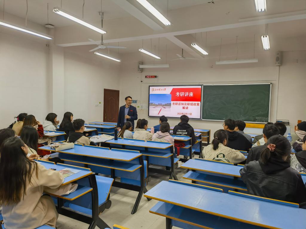 随后,饶先发和我院研究生秘书尹琼在生命科学学院举办考研讲座和研究生招生宣讲会。饶先发解读了考研需知、研招政策,鼓励同学们积极考研,成为高层次人才。尹琼从近三年研究生录取情况、招生专业、招生基本要求、招生奖助政策等方面介绍了学校和学院的研究生招生情况,欢迎同学们报考江西理工大学。