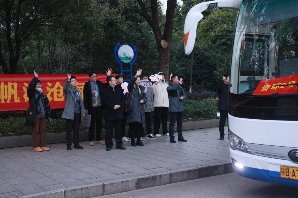 最后,学院领导、辅导员和志愿者们挥手告别奔赴考场的考研学子们。