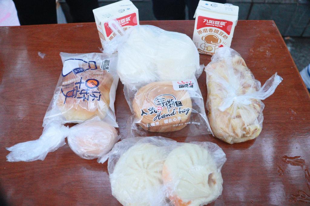 爱心早餐有包子、豆浆、馒头、鸡蛋、酱香饼等。手握一瓶滚烫的豆浆,就着温暖的早餐,这份爱心早餐不仅温暖了手心、补充了能量,更是暖到了考研学子的心坎。