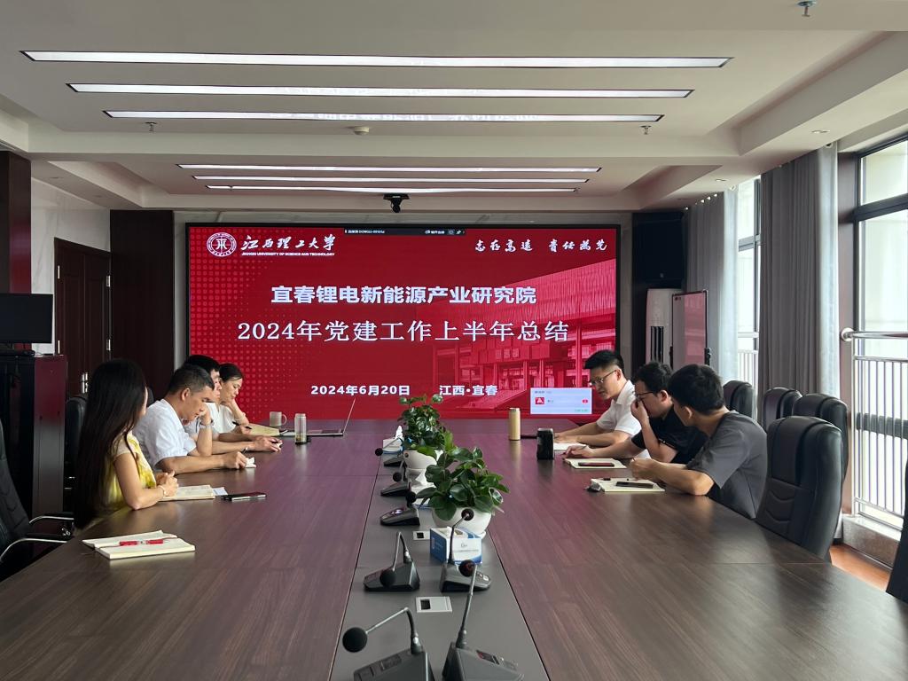 本网讯 6月20日,宜春江理锂电新能源产业研究院党支部在908会议室召开2024年党建工作上半年总结会暨党员扩大会议,研究院党支部书记胡凯建、研究院各部门负责人以及相关人员参加会议,法人代表周贺鹏应邀出席会议。