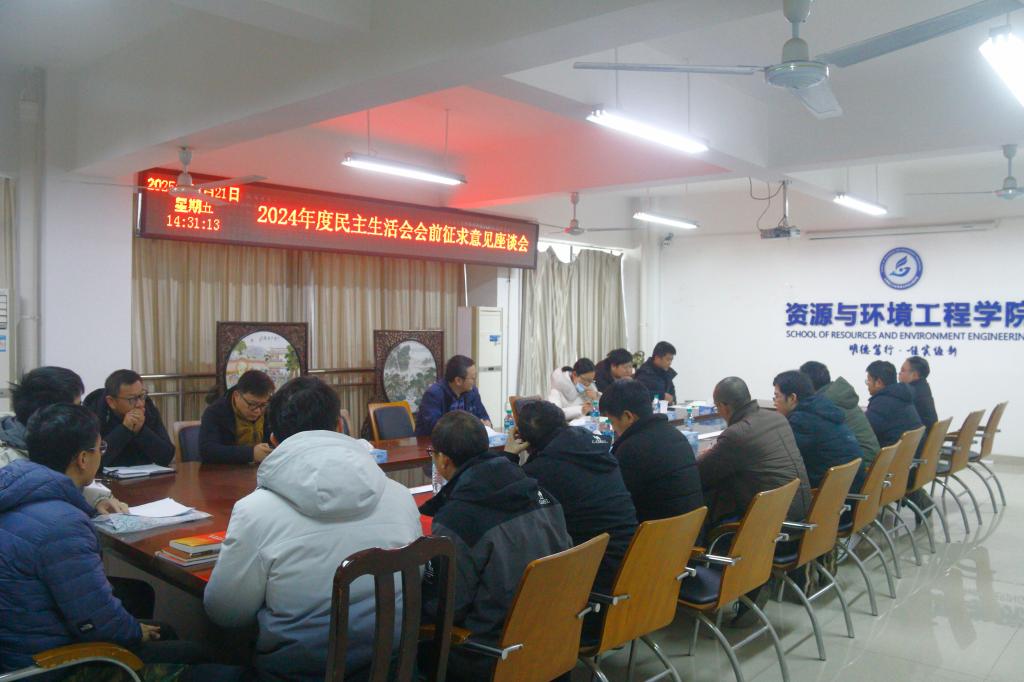 本网讯 2月21日下午,资源与环境工程学院于黄金校区逸夫楼第一会议室召开2024年度学院领导班子和党员领导干部民主生活会会前征求意见座谈会,学院党委领导班子成员、党委委员、党支部书记、系/教研室主任、民主党派代表、高层次人才代表、教师代表参加了座谈会。会议由学院党委书记陈明主持。