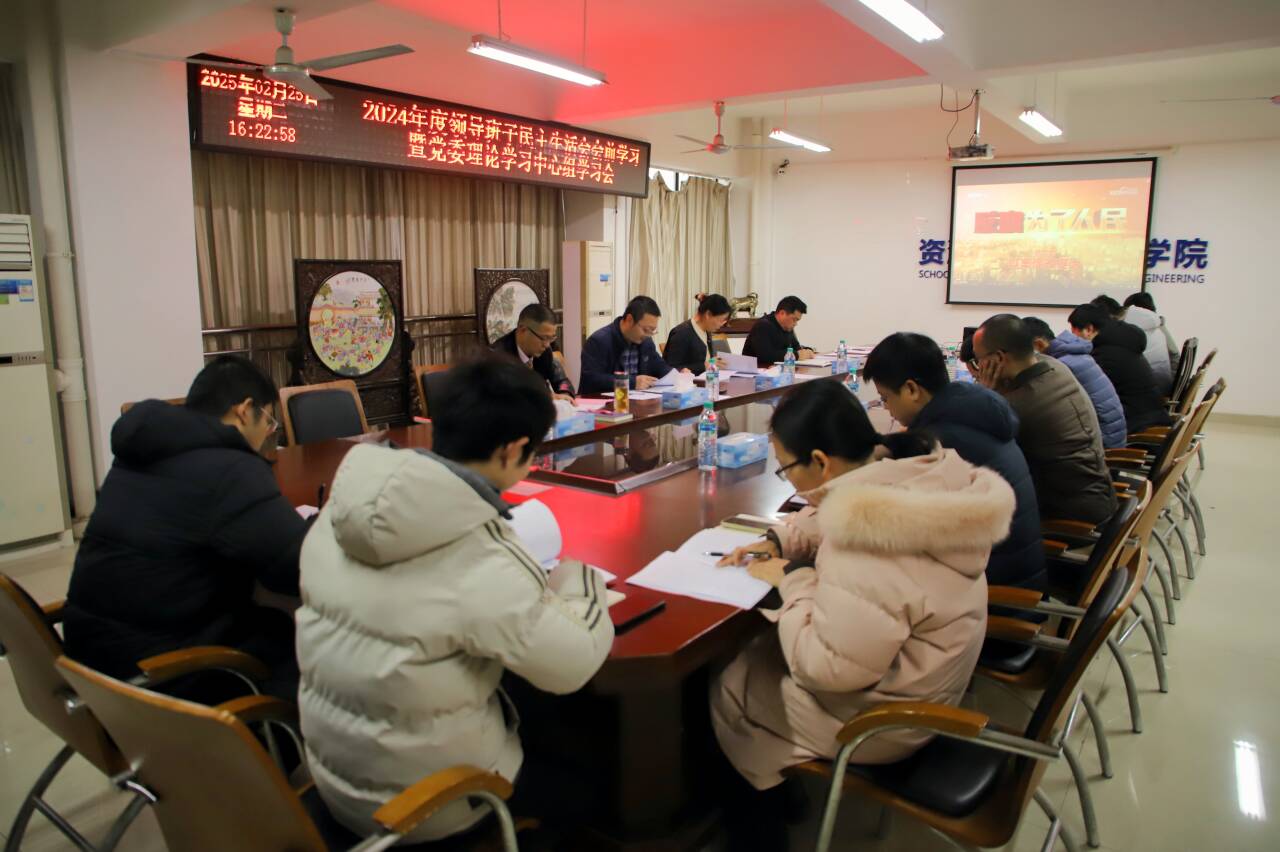 本网讯  2月25日,我院于黄金校区逸夫楼第一会议室召开2024年度领导班子和党员领导干部民主生活会会前学习暨党委理论学习中心组学习会,学院党委书记陈明、院长何桂春、党委副书记张春雷、副院长陈飞、副院长余新阳以及党委委员、师生党支部书记等参加了会议。会议由陈明主持。
