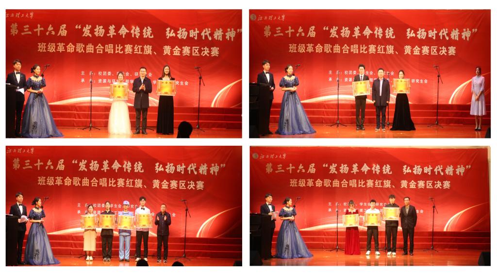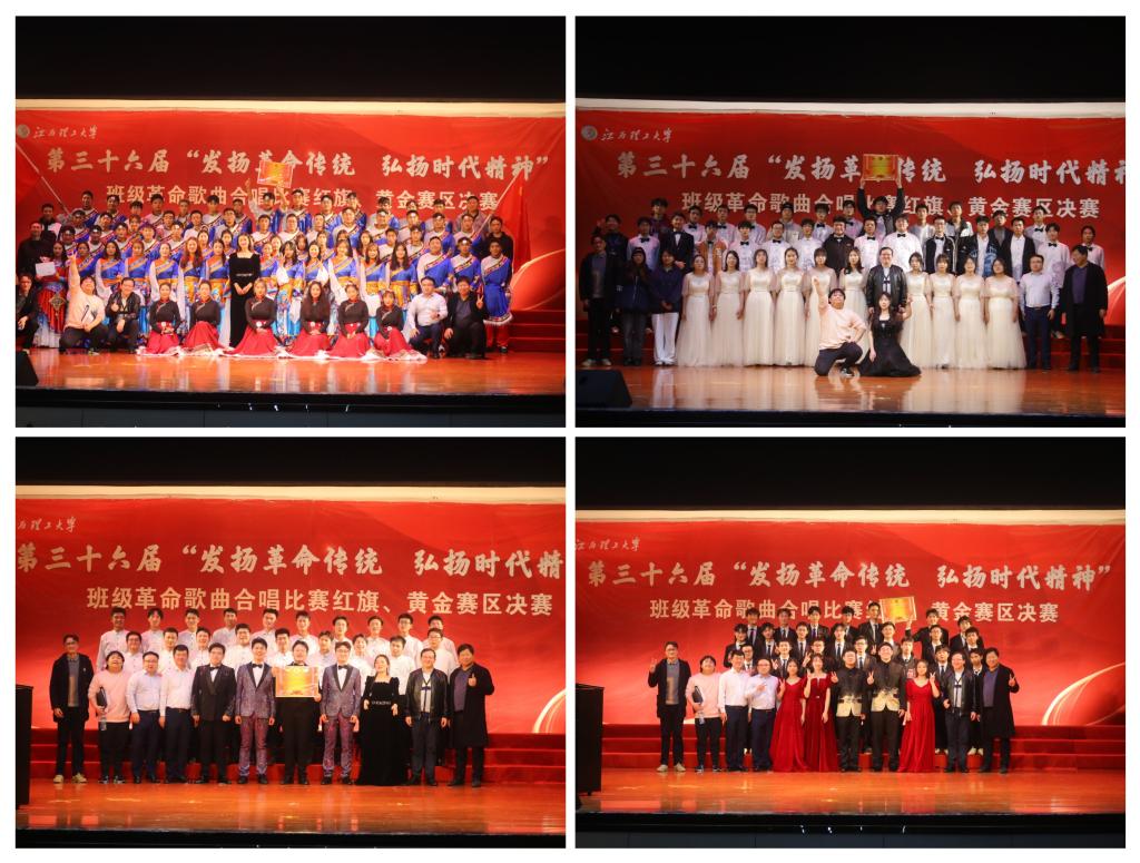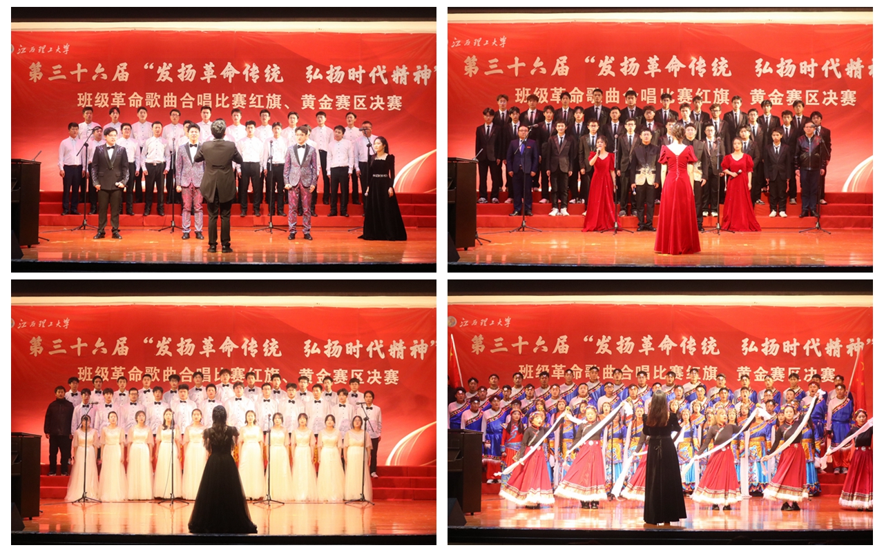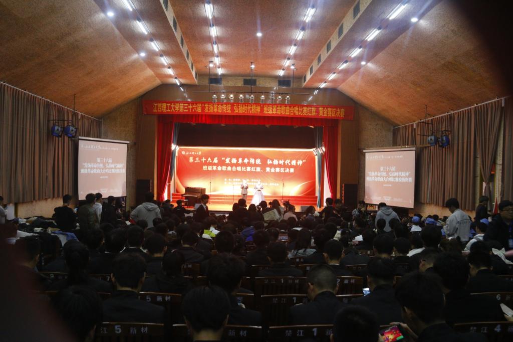 本网讯 为了传承红色革命精神,激发学生爱国热情,12月9日晚,由校团委、学生会、研究生会主办,我院团委、学生会、研究生会承办的江西理工大学第三十六届“发扬革命传统,弘扬时代精神”班级革命歌曲合唱比赛红旗、黄金赛区决赛在红旗校区大礼堂隆重举行。校党委常委、组织部部长刘志刚,校团委书记杨智勇,各学院选送的22个参赛班级全体同学、“三联系”领导、班主任、辅导员现场共享了此次视听盛宴。