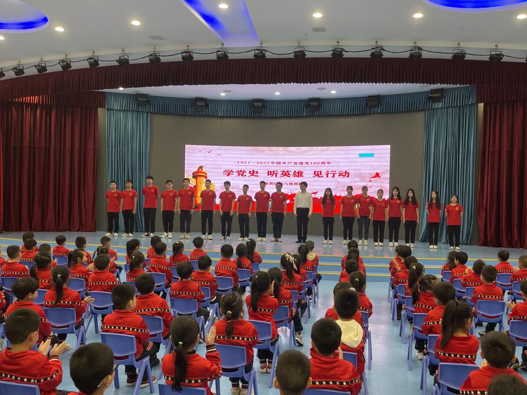 随后,宣讲员高佳俊在礼堂给小朋友们讲了《矢志不渝的“飞将军”》的故事。他慷慨激昂的讲解,在小朋友们的心中埋下了红色的种子。国旗下的宣讲结束之后,保育院大五班的小朋友们给宣讲员们带来了舞蹈《闪闪红星》,看着小朋友们稚嫩的脸庞和整齐划一的动作,不禁为他们优秀的表现鼓掌。