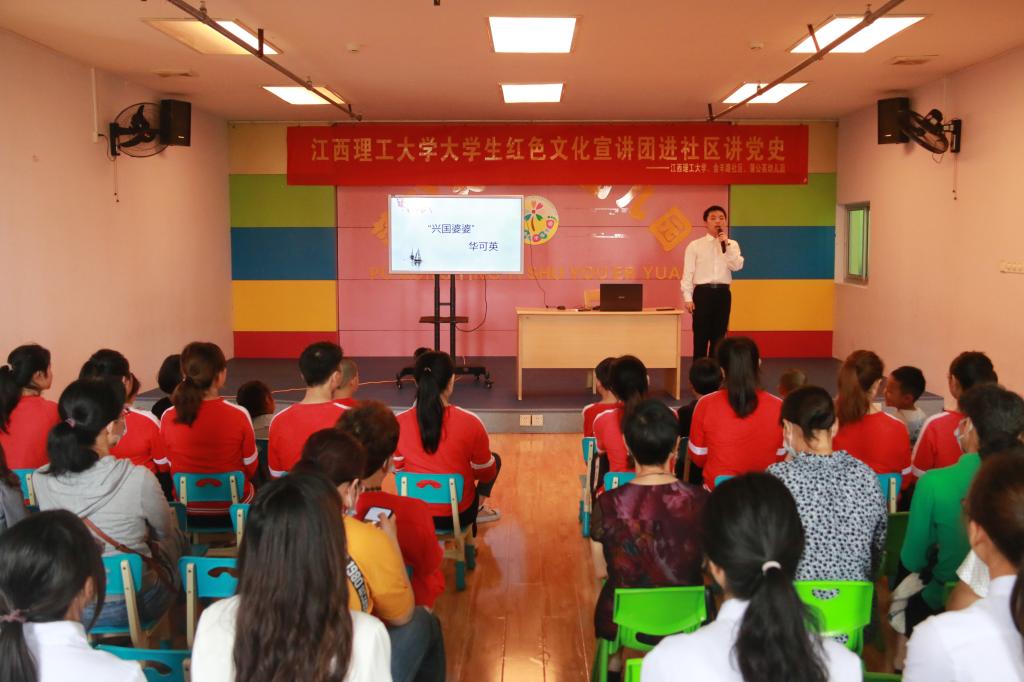 本网讯 4月2日上午,资环学院大学生红色文化宣讲团到赣州市章贡区金丰路社区和蒲公英艺术幼儿园,为社区党员群众和幼儿园教师、小朋友讲党史。