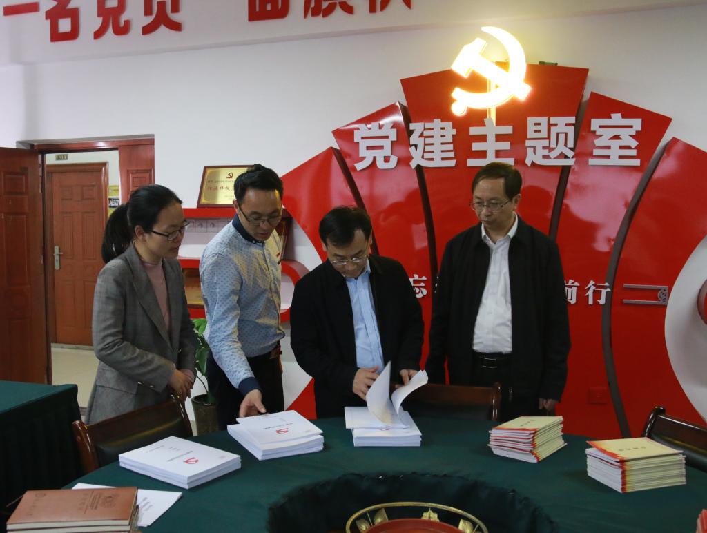 在赖华的带领下,钟小武一行还参观了党建活动室。赖华介绍了我院党建“三化”建设情况,重点介绍了对党史教育、学生党员发展及管理情况。